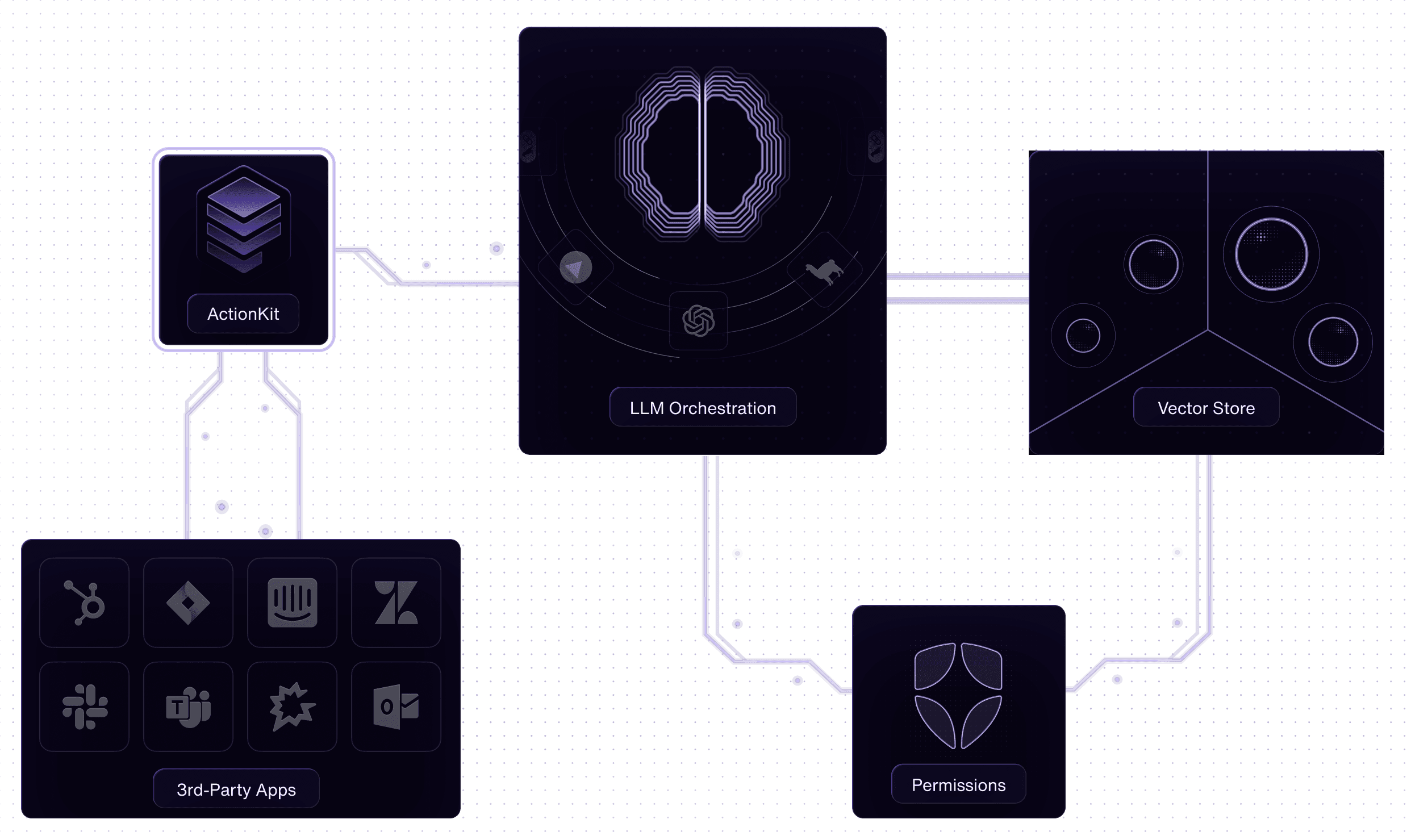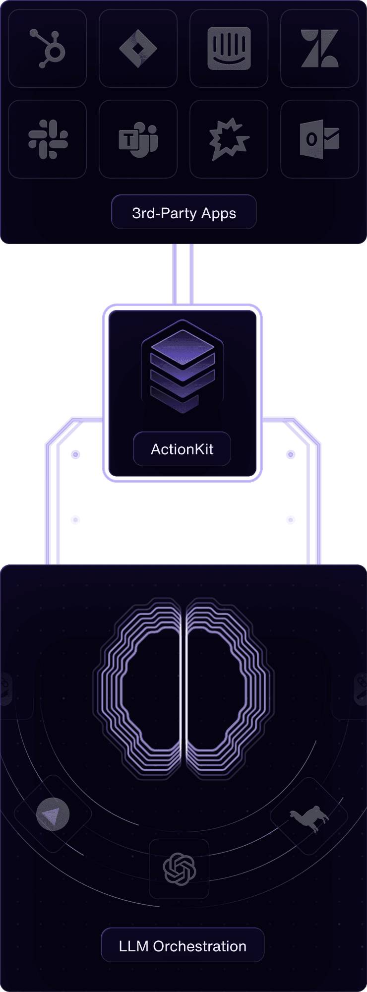 ActionKit is compatible with any LLM framework. With just a few lines of code, you can add ActionKit as an available tool for your AI agent.