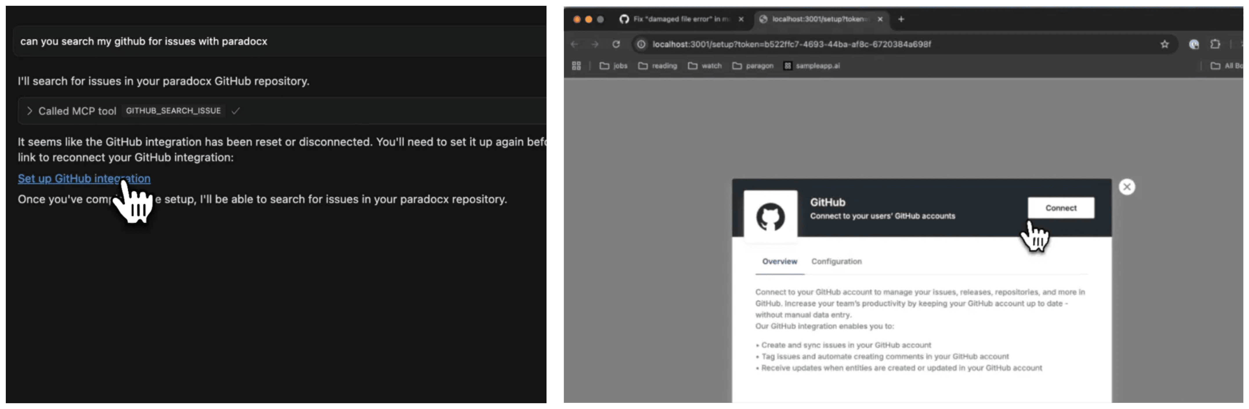 If your SaaS application is an MCP client, use the ActionKit MCP server to give your client ActionKit provided tools and magic links to authenticate users to their integrations when needed.