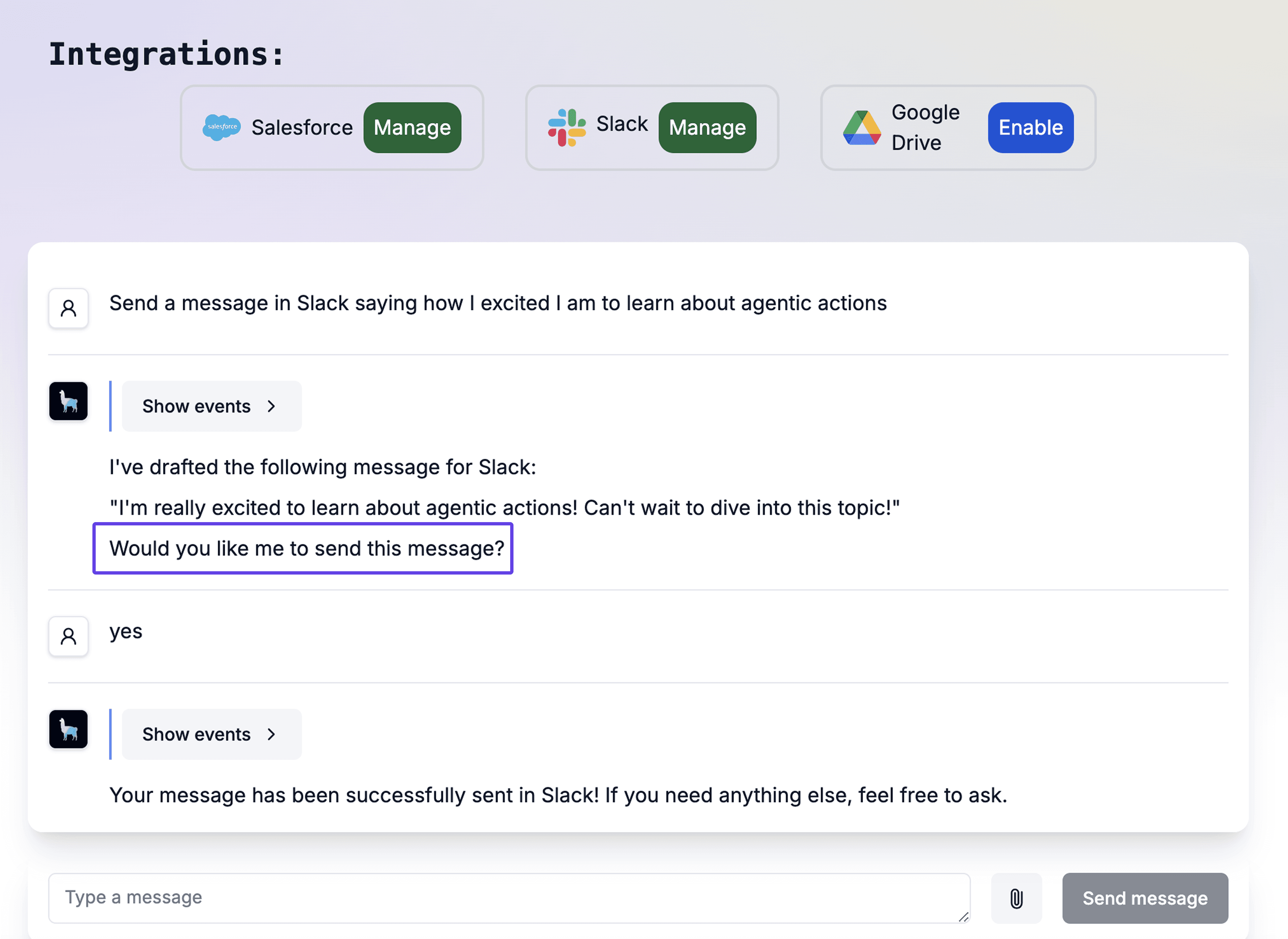 It’s always safer to have a user confirm a tool call, especially if the tool updates 3rd-party data. For example, if your AI agent can overwrite customers’ CRM data or send emails on their behalf, your customers will likely want oversight and an approval step before your AI agent performs these types of action.