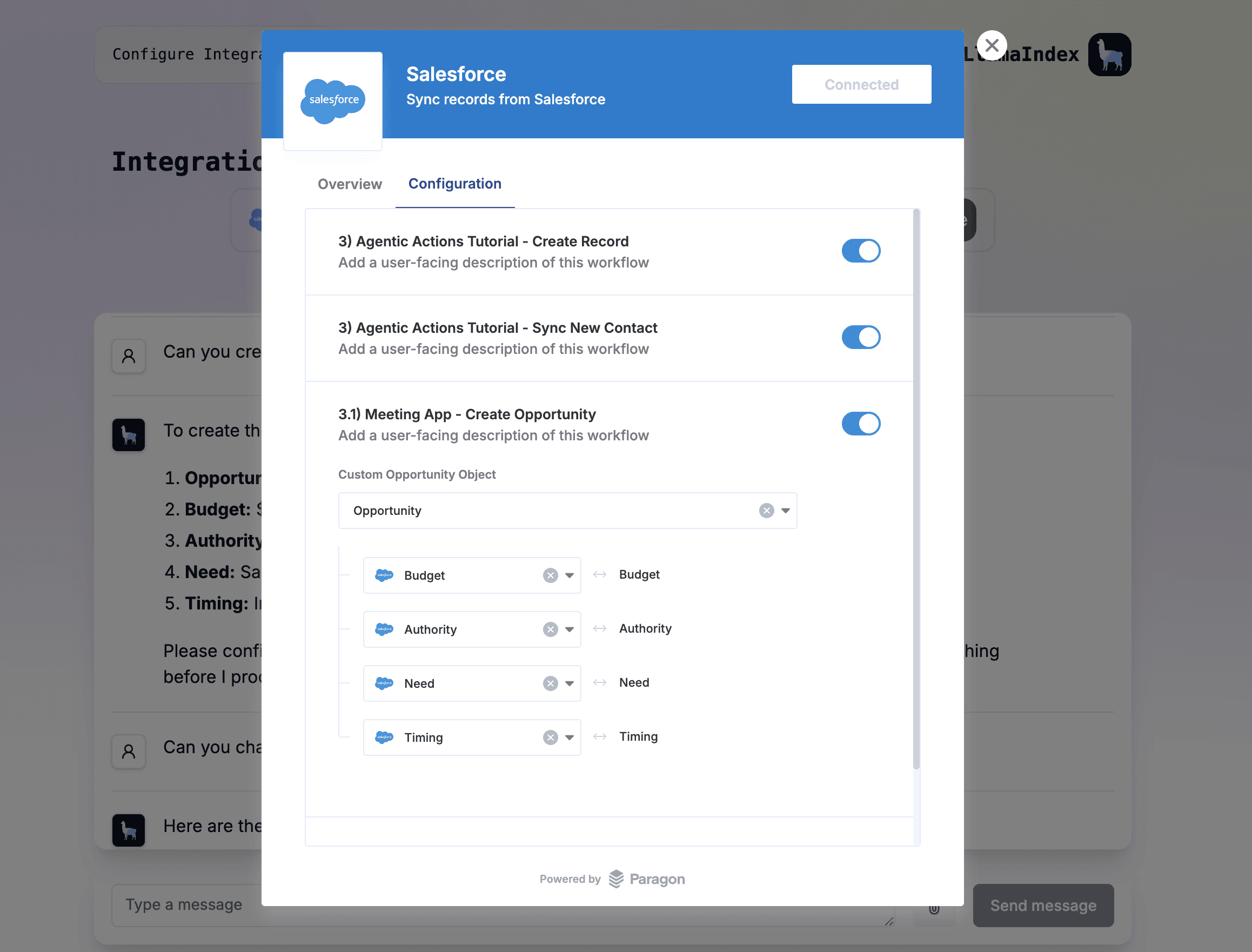 In this AI meeting assistant demo, we highlighted how integrations can make your application more useful for your users - not only automating meeting transcript summaries and takeaways, but also using meeting context to create tasks, messages, and Salesforce objects. With Paragon, implementing these automation features in your users’ third party applications doesn’t have to be hard.