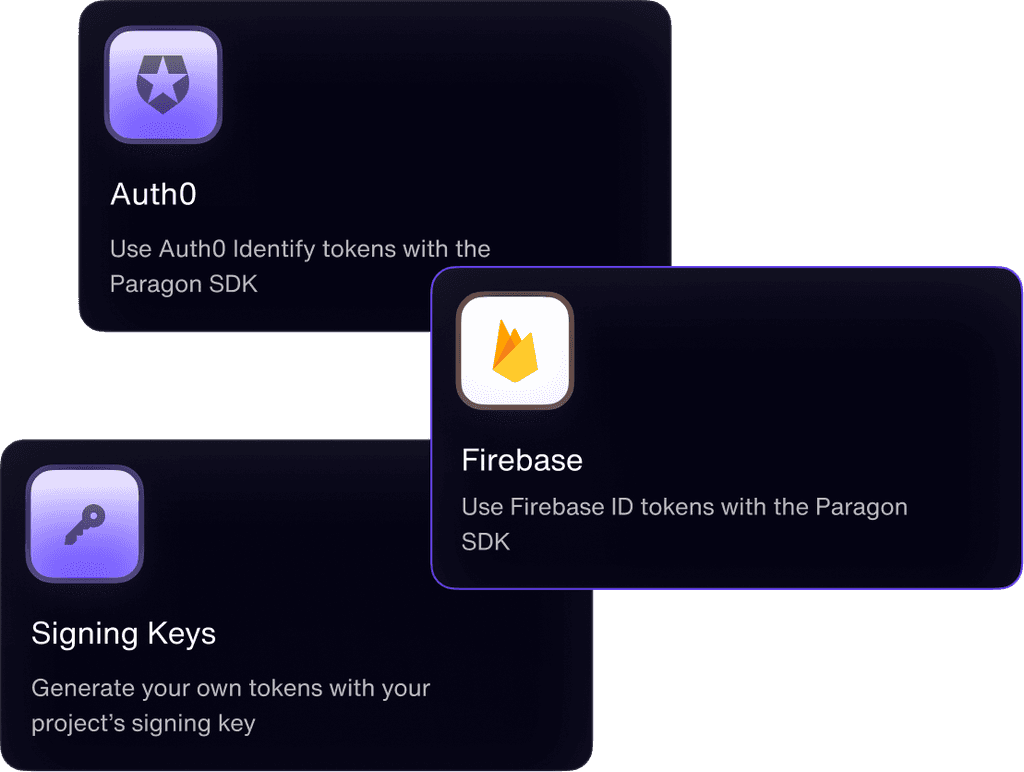 Paragon's integrates with your authentication backend to link individual end-users or organizations with Paragon user tokens.
