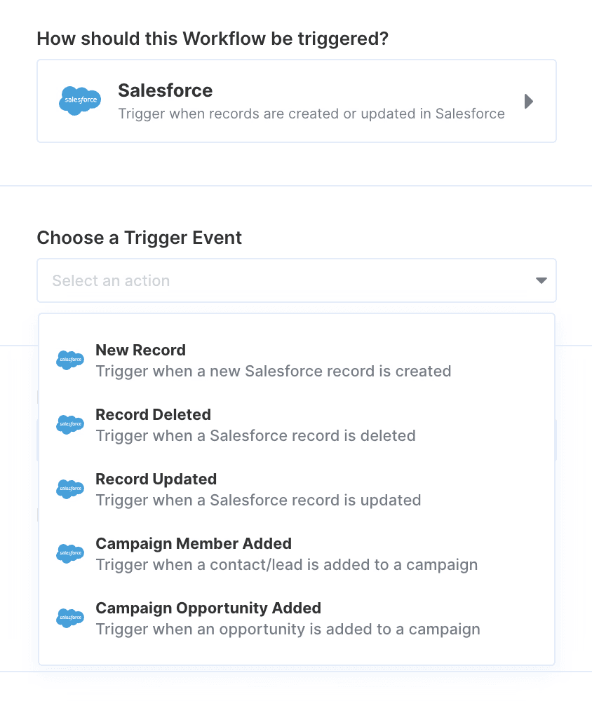 This way, your team can simply pick the desired 3rd party event they want to use to trigger a workflow instead of solving the challenges around building performant webhook listeners.