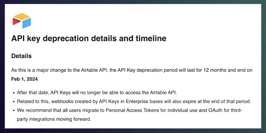Your team will have to keep an eye on any breaking changes to the 3rd party API that are released, as they can break the integration. While this does not happen too frequently on a per integration basis, if you get to the scale of dozens of integrations, you may find yourself in a state of constantly having to update existing integrations on rotation.