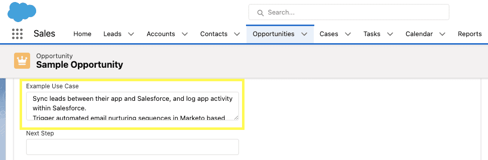 This will allow your sales team to document a few key pieces of information: