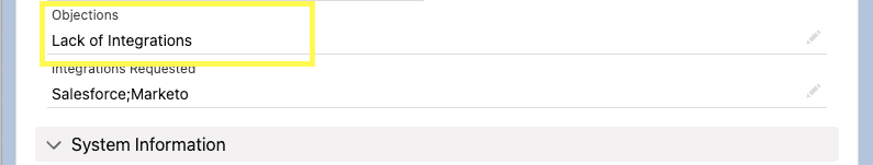3. Create a multi-select field with reasons for a deal to not move on, and include ‘integrations’ as an option.