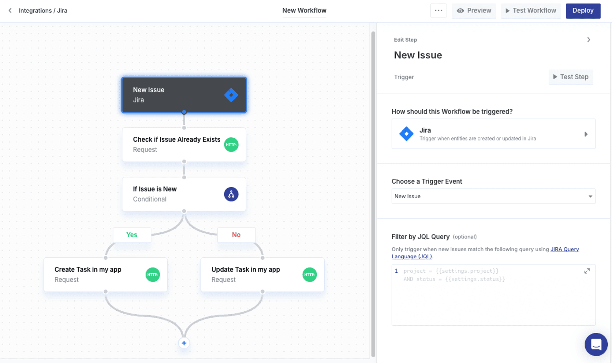 The difference between API queries and webhooks is akin to calling a bank to learn about recent transactions versus getting a push notification. Webhooks fundamentally off-load the timing issues to the third-party application, which has visibility to when an update is available. For example, many of our customers use Paragon to listen for new Jira Issues that are created in their users’ Jira accounts in real-time.