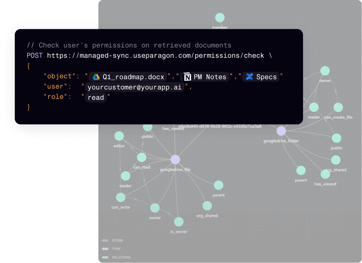 Instead of researching, ingesting, and normalizing the permissions for every file or record from your users' 3rd-party apps, just query Paragon's Permissions API.