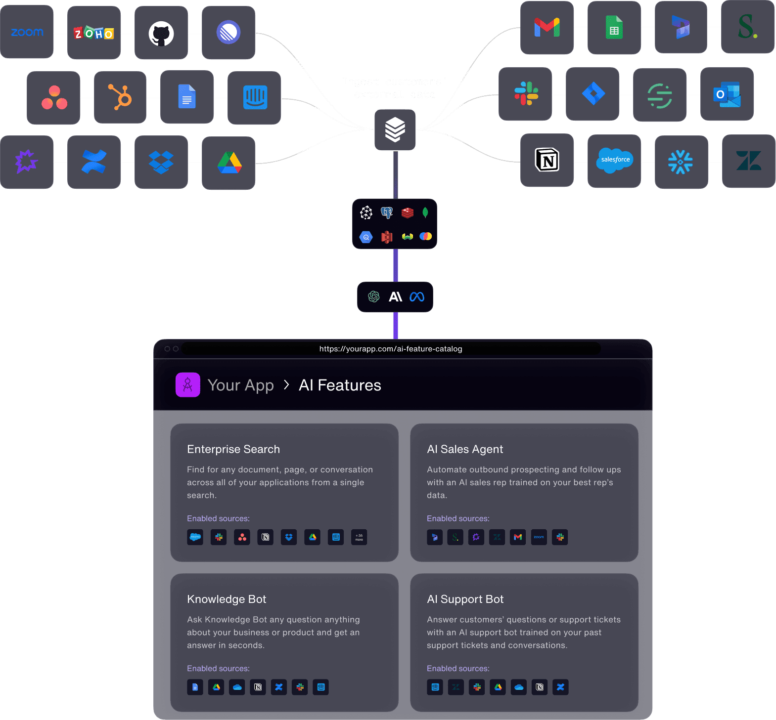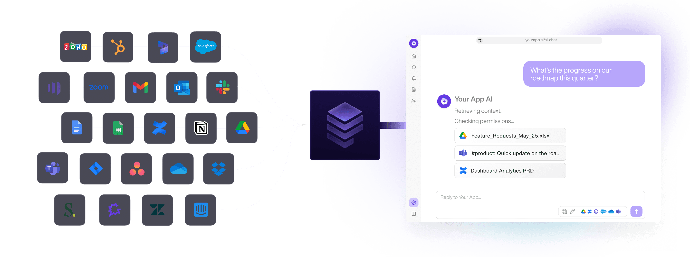 Add knowledge connectors to your AI product in minutes and enforce proper access controls without the plumbing.