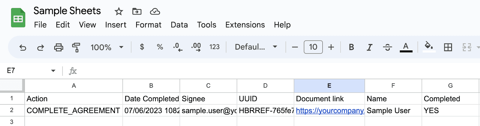 The Google Sheets integration automatically creates a log of events that occur around the contract, so that users can see when a document was signed, and by whom. Harbour used Paragon’s headless implementation and created their own interface to enable users to select the Google Sheets destination, as well as the triggering event(s) that the user wants to have logged.
