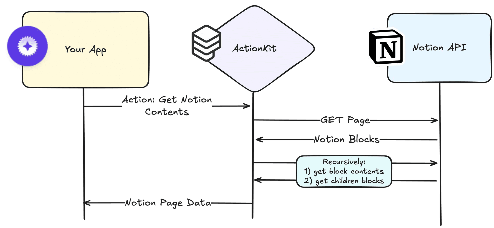 Paragon’s actions provide abstractions on top of the 3rd-party API - whereas before getting a notion page’s contents may require a chain of Notion API calls, it’s just one action call with ActionKit