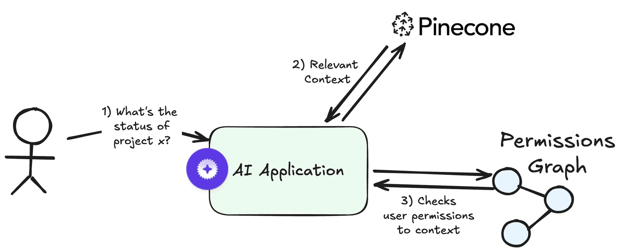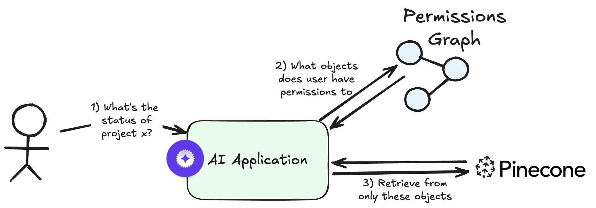 Read operation 1 enables pre-retrieval access control. Getting allowed objects for a user allows you to first query the permissions graph for object IDs (this could be file, page, record IDs depending on the integration data source). Then use the list of object IDs to construct a metadata filter when querying your RAG database.
