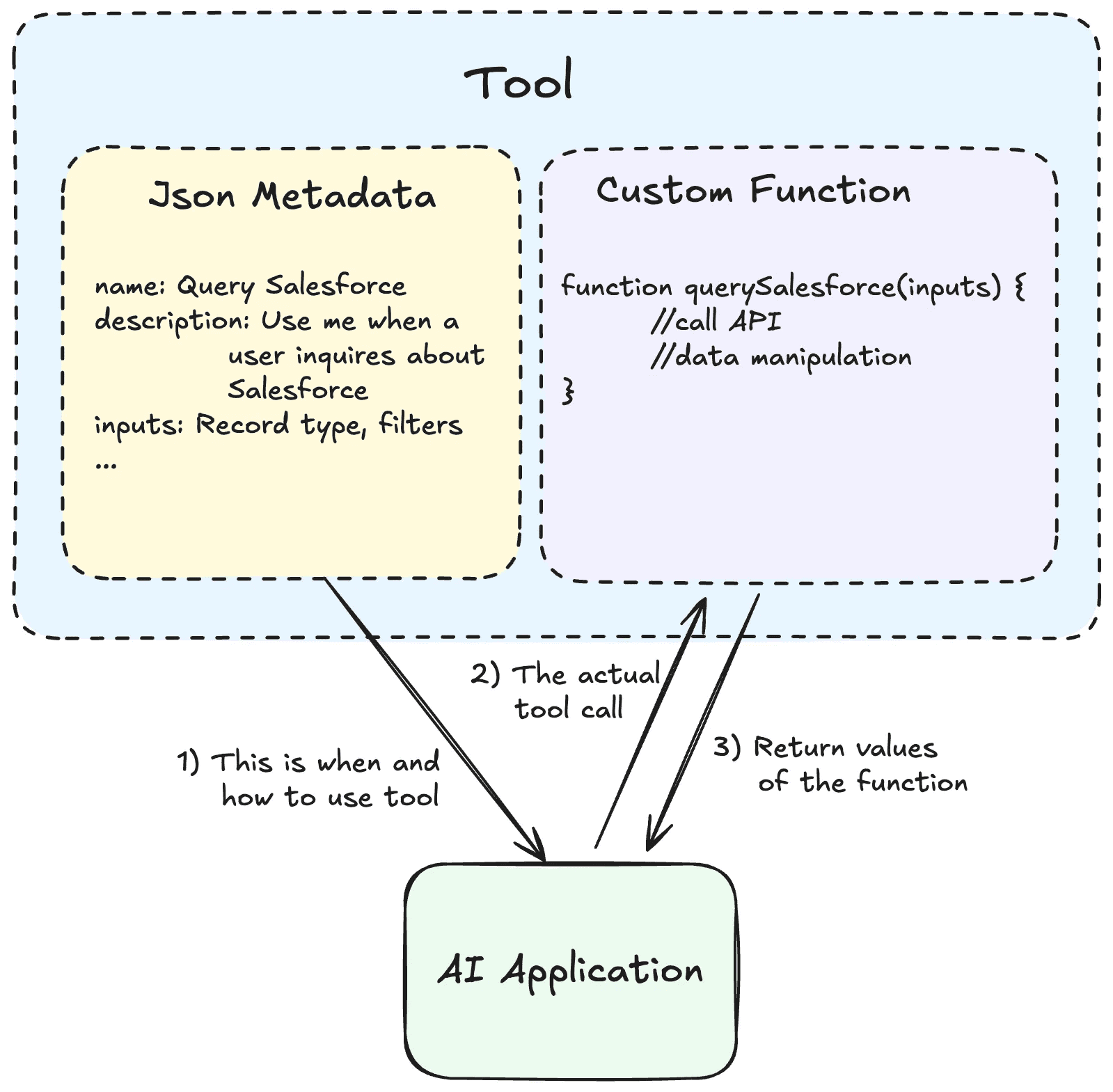 If you’re not familiar with agent tool calling, tools provide an AI application with code that it can run. You provide: