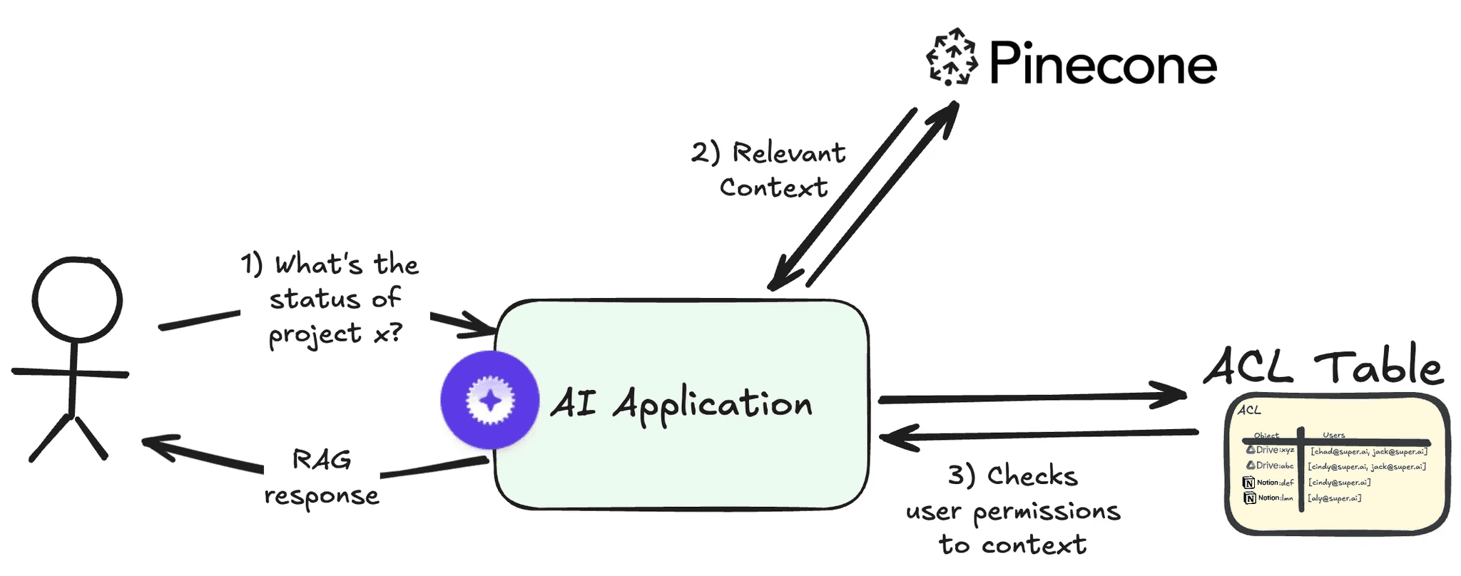 With this protocol, whenever your RAG application retrieves context from your vector database, your application will also check the ACL tables with the native integration provider permissions to check if the authenticated user has access to the retrieved data source in question. This ensures the correct permissions are always enforced with each RAG query.