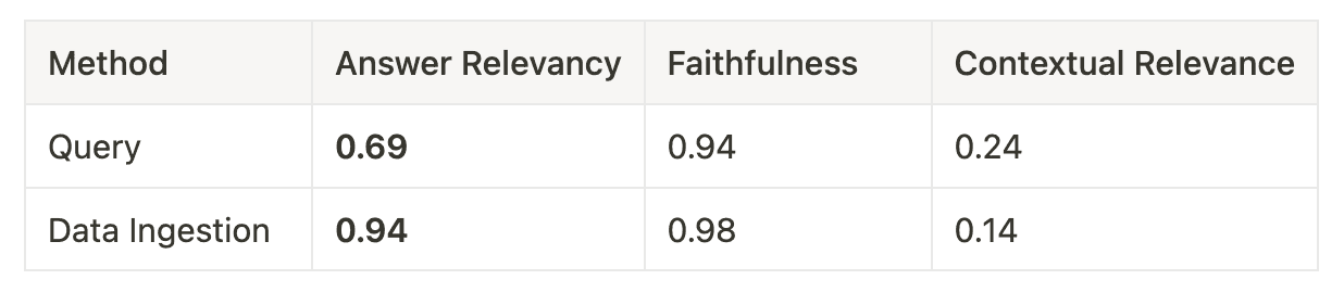 It was clear that data ingestion/vector search seemed to outperform querying for RAG, but we wanted to take a harder look on why this was the case.