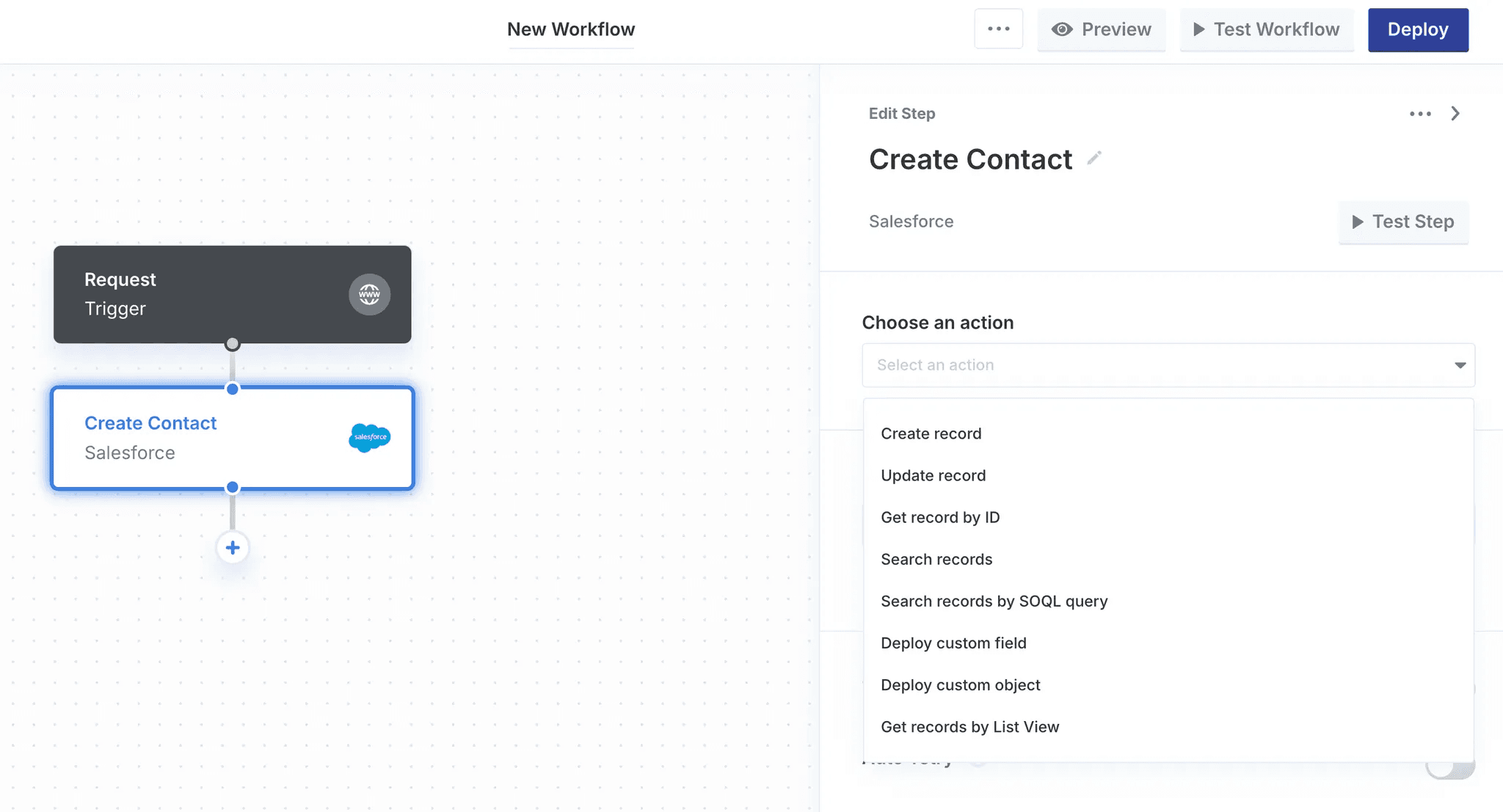 Paragon has abstractions for pushing created contacts and pulling all contacts, making it an easier process to use the Salesforce API and see what’s possible. Paragon works with many customers on their Salesforce integrations and have curated a list of popular “actions” to make the Salesforce API easier to work with.