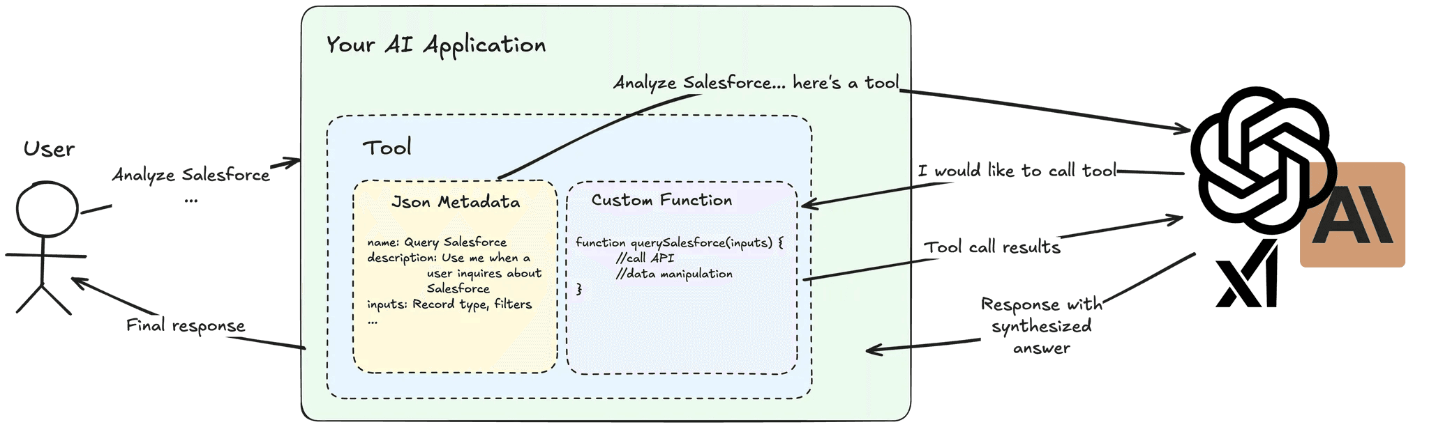 It’s easy to forget that tools are still just tokens at the end of the day. LLMs decide when to call a tool based off the tool name, tool description, input names, and input descriptions. The code that makes up the tool/function call is run in your backend (NOT ran by the model provider). The result of the code is returned to the LLM.