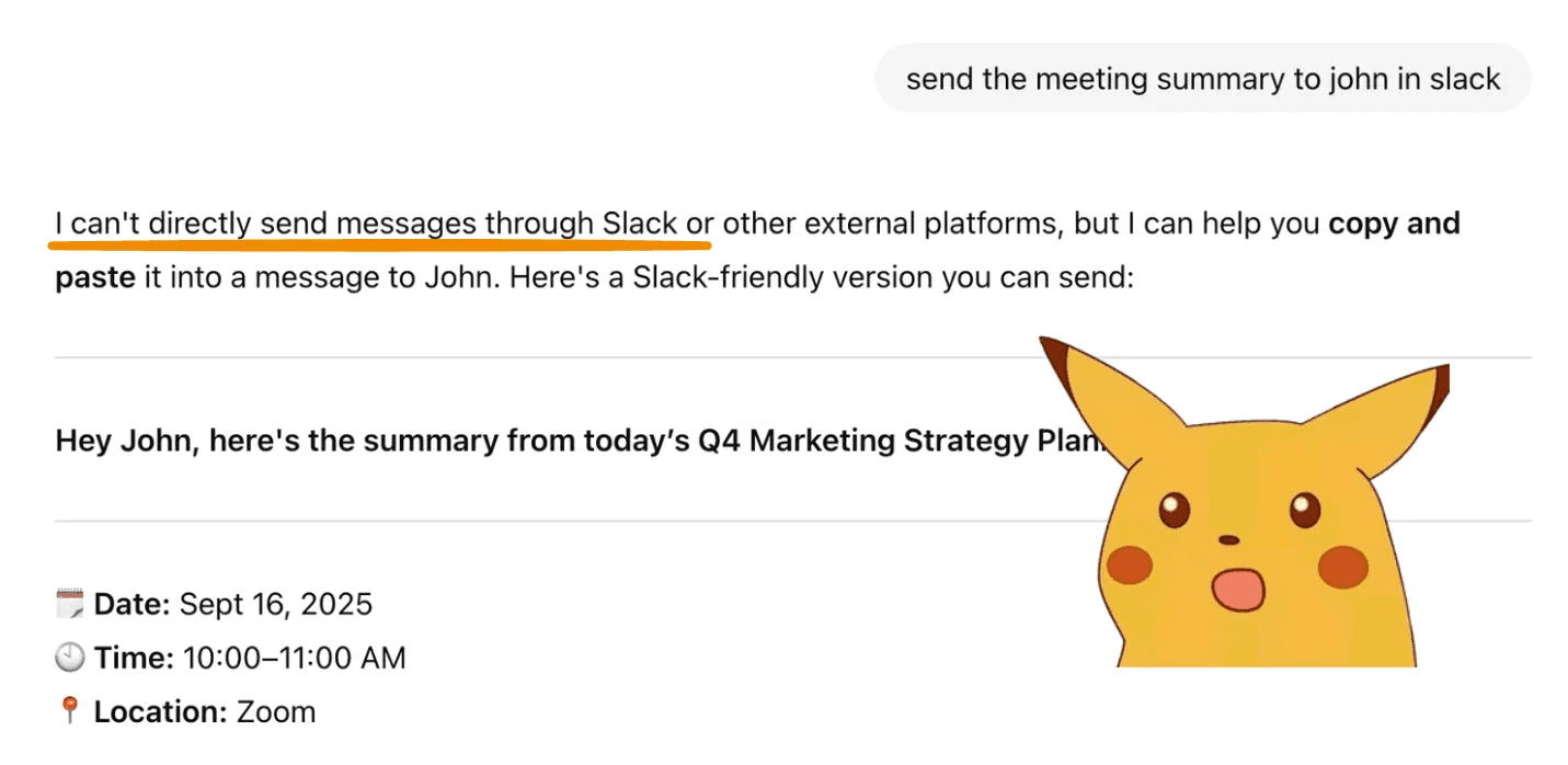 Using Paragon’s ActionKit MCP server as an example, we used the same multi-agent pattern to plan and select tools, but what the ActionKit MCP server can uniquely do is provide server-specific context, such as magic links that authenticate users directly in the chat.