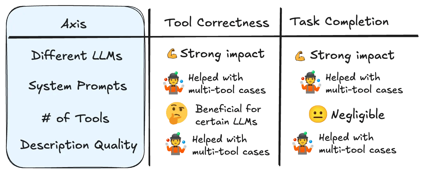 While that’s partly true, looking at the data closer, we can see that prompts, descriptions, and number of tools do have a meaningful impact on complex tasks.