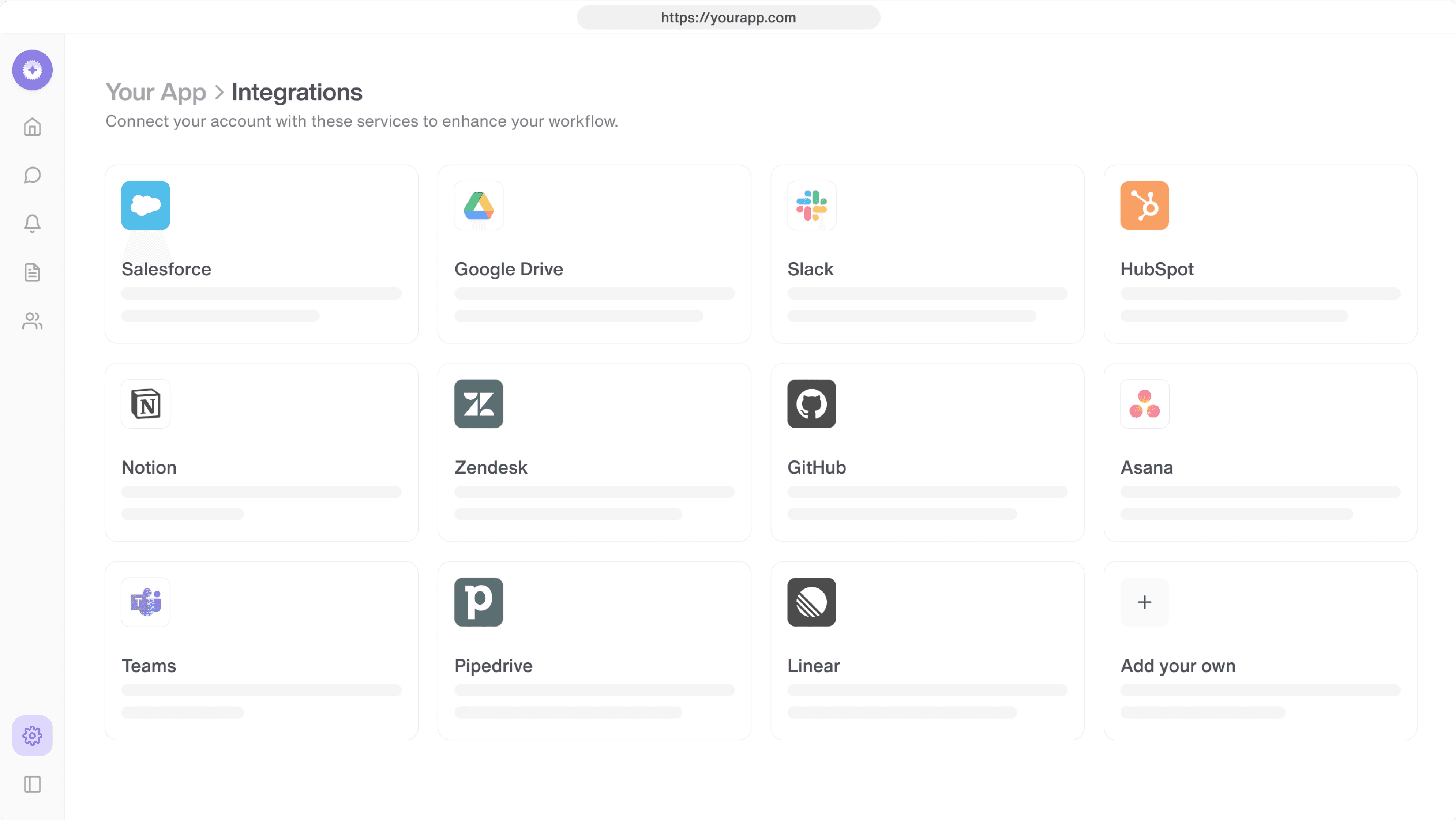 Build the integrations you need to power core features and workflows in your product.