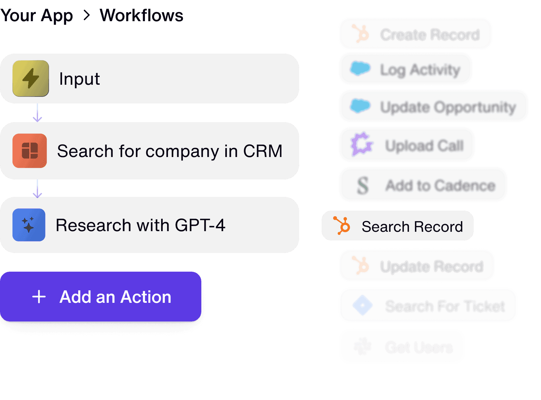 Make requests to any 3rd-party API endpoint via the Connect API, or build re-usable custom actions (coming soon).