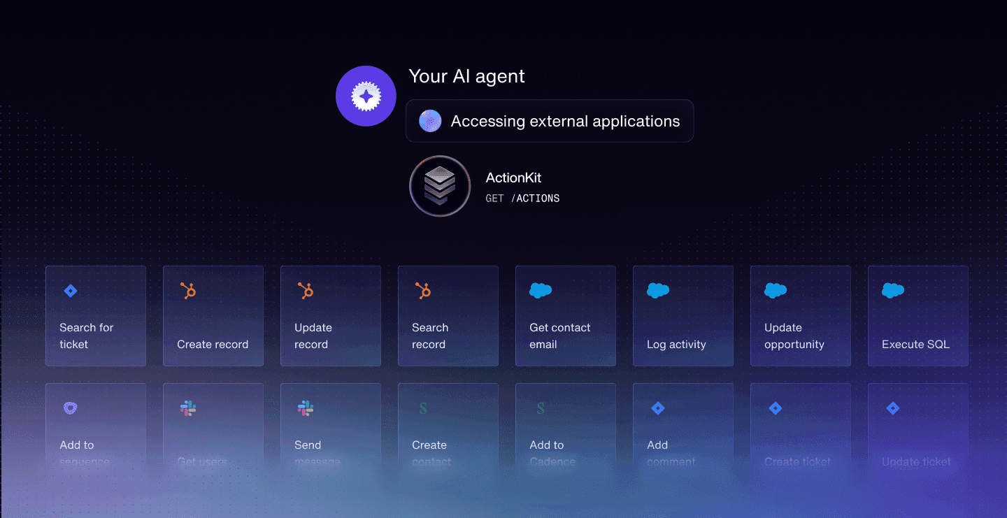 ActionKit is a natural evolution of Paragon’s mission to build the connecting layer for all software. Over the last five years, we’ve developed deep connectors to many of the most popular B2B applications, with abstractions over each API that are now fine-tuned to help AI Agents easily understand and interact with the 3rd-party APIs.