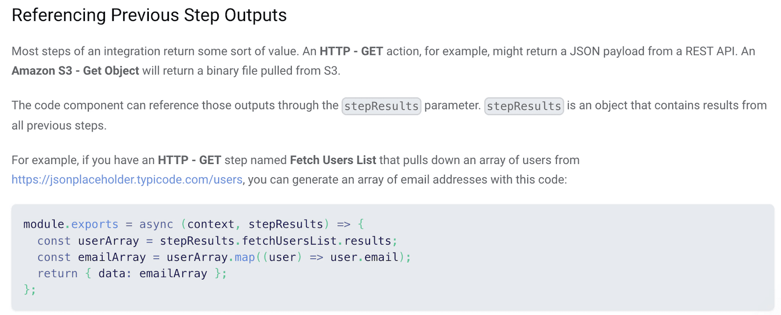 One of the most important features when it comes to implementing workflow logic through a visual workflow builder is the ability to reference data outputs from previous steps.