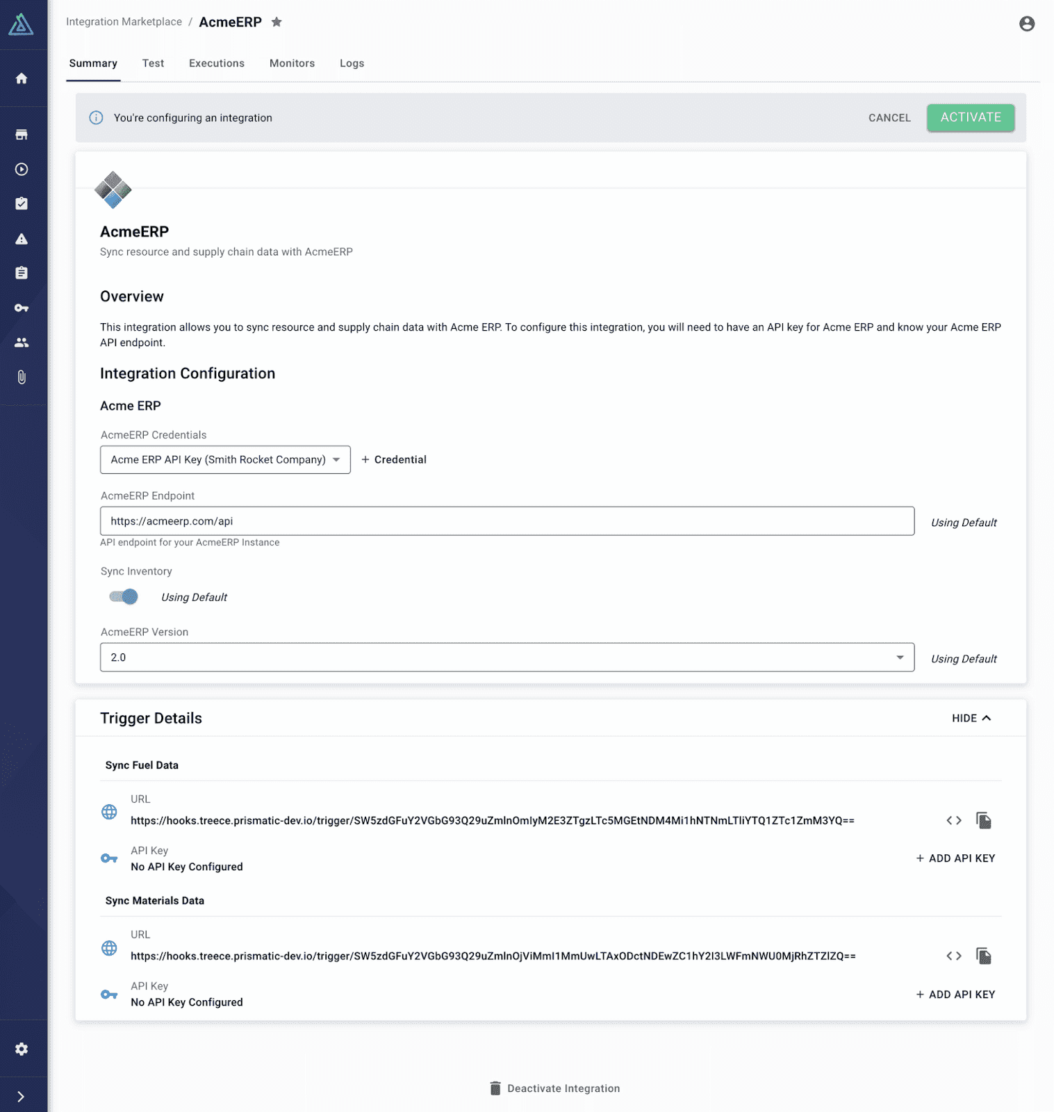 Embedded Integration Marketplace: Users are forced to use Prismatic's embedded integration marketplace, a full page that comes pre-built with their UI. If they already have other integrations, they need to manage them separately.