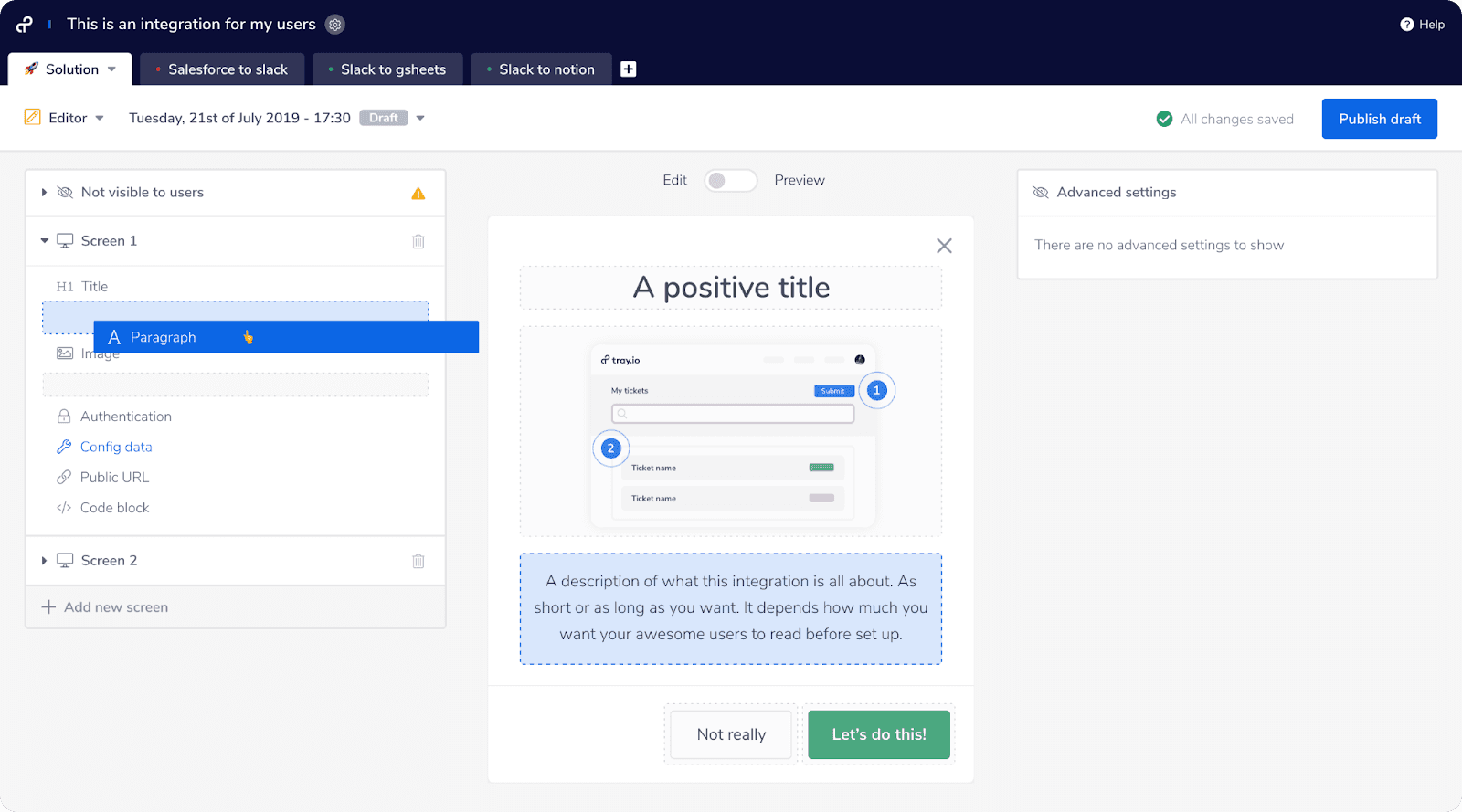 Unlike Prismatic, all integrations written in Paragraph can be further modified and updated in the visual workflow editor, and vice versa.