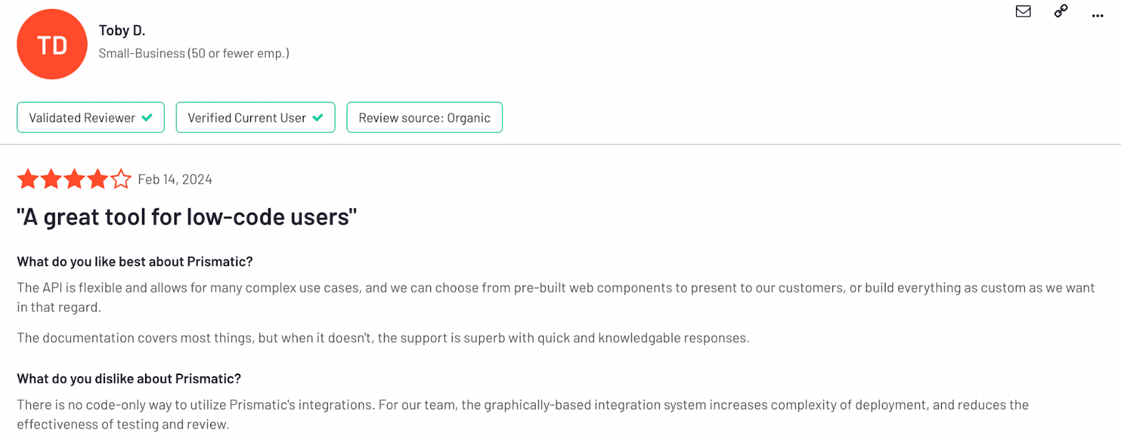 Additionally, users often find Prismatic very unintuitive to use, with a steep learning curve due to unnecessary complexity. Here are just a few quotes we’ve received from companies that have switched from Prismatic.