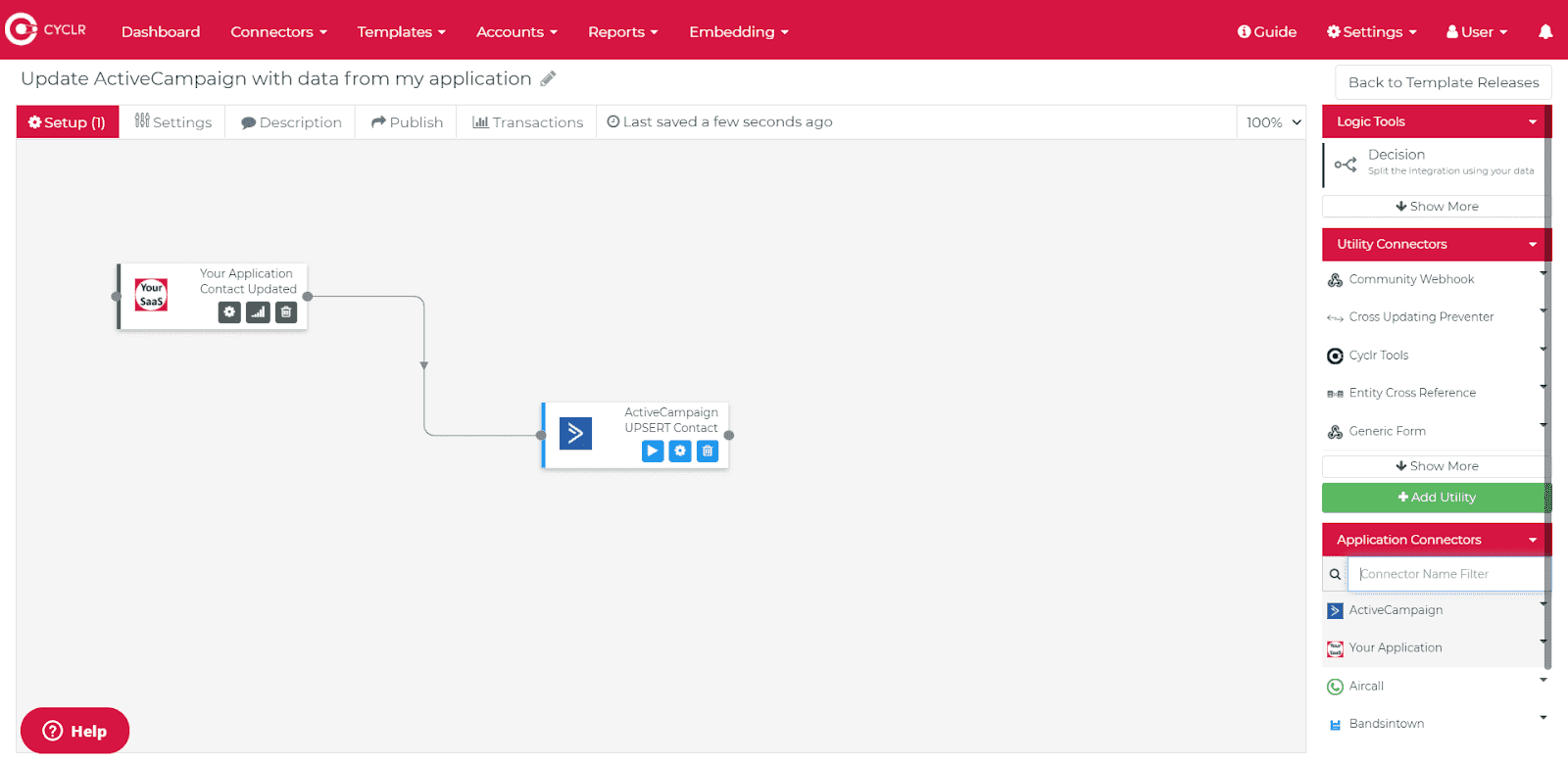 Cyclr provides easy, low-code tools to design and build integrations, which can significantly reduce the time and effort required to set up new connections. The platform includes a single pane of glass over your entire integration environment, giving you a comprehensive view and control over your integrations.