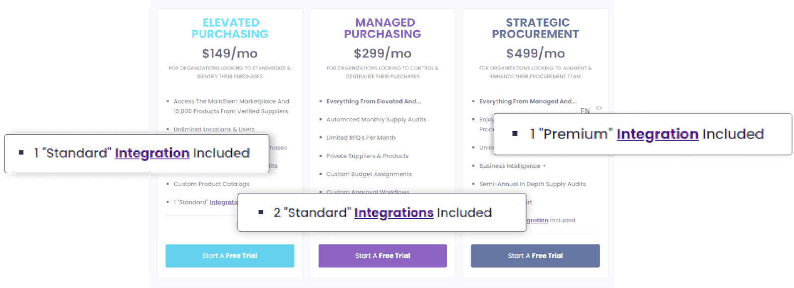 In its simplest form, all integrations can be treated as equal, or you can specify a set number of ‘standard’ and ‘premium’ integrations for each tier.