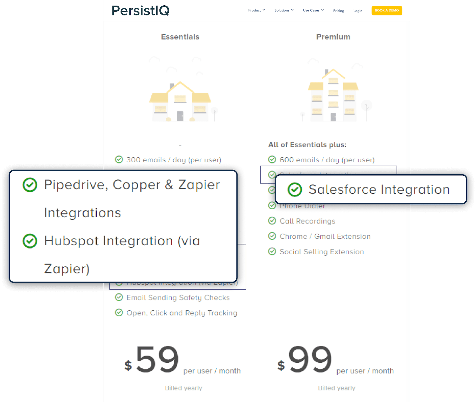 Below is how email marketing tool, PersistIQ, used this strategy to price their integration and upsell Salesforce users into their higher tier.