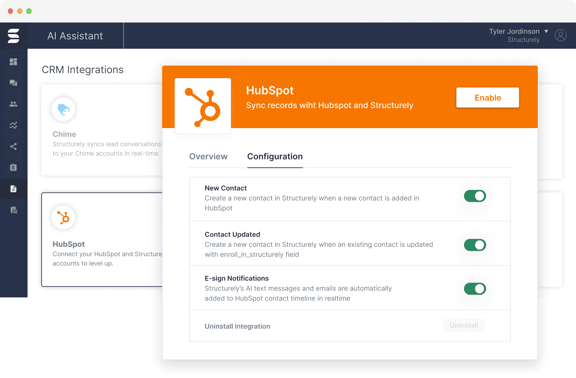 As you can imagine, CRM integrations are a fundamental part of Structurely’s product and roadmap for their SaaS offering to the end-users of their platform. Without the right CRM integrations, customers would not be able to seamlessly pass leads and qualification data between their CRM and Structurely’s AI platform. As a result, having an integration can be the difference between closing a prospect or losing them.