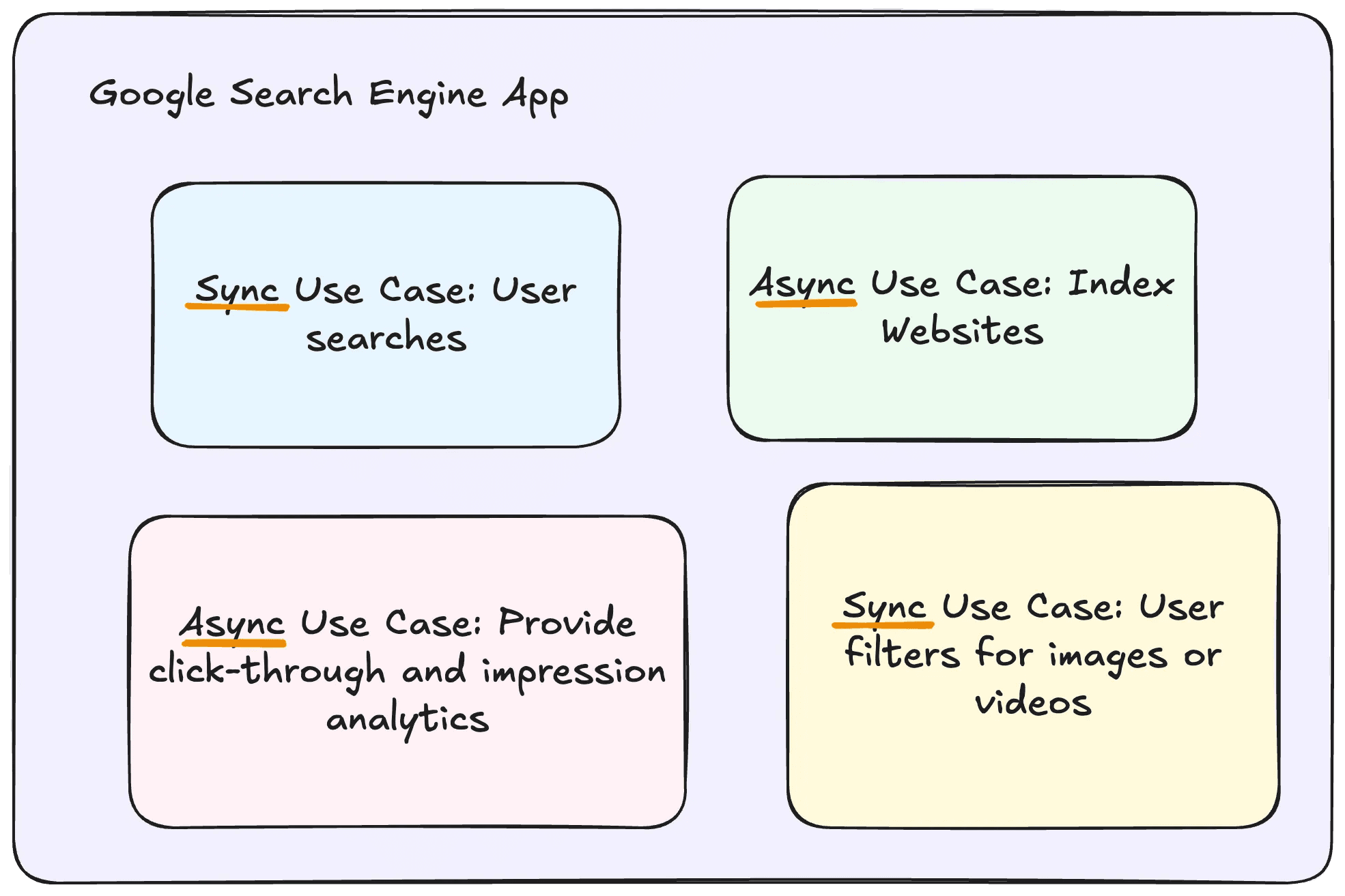 To put it simply, synchronous use cases are ones where timeliness is important, whereas asynchronous use cases are ones where jobs can be time or compute intensive, so it’s more important for the job to be done correctly, rather than quickly.