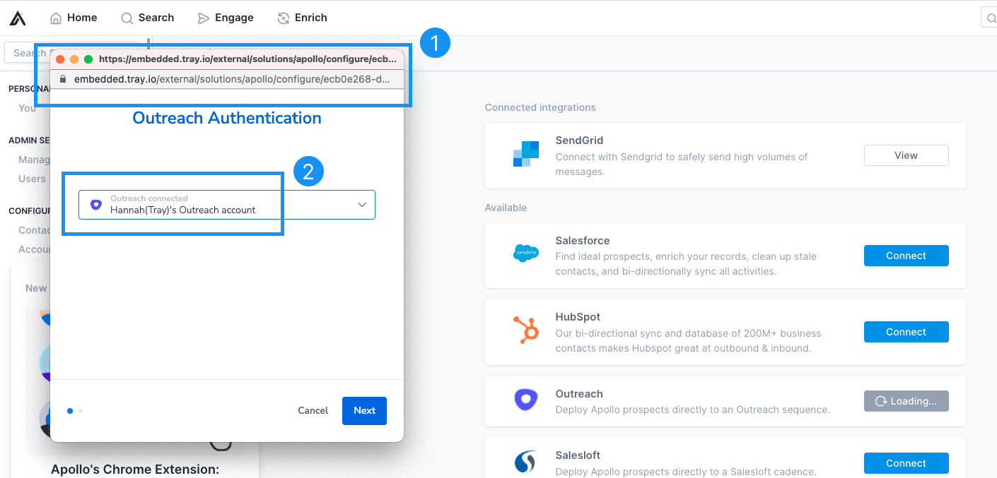 Out of the box, end-users are taken to an external Tray URL for authentication for their integrations with an inelegant UI, which makes it clear to users that the integration is not truly native. The only compromise is with a domain matching, which masks the URL of the authentication popup, but does not address the rest of the UI challenges.