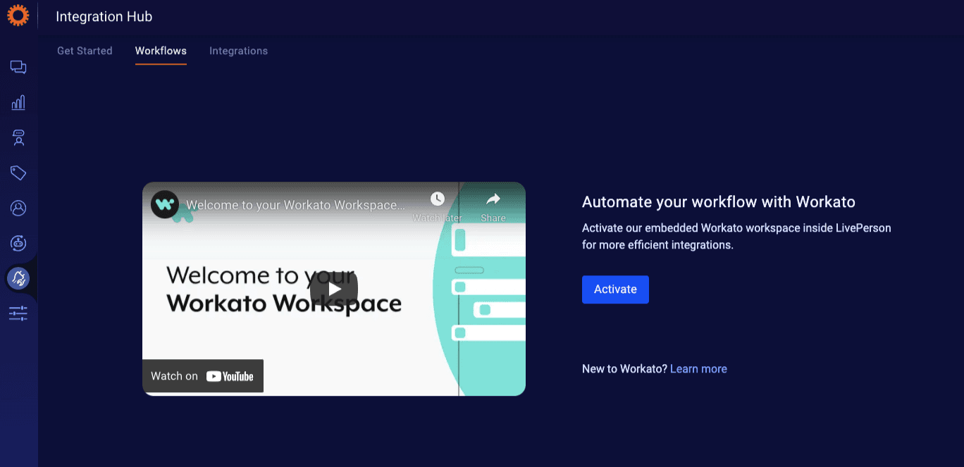 The only way to implement Workato is through an iFrame of their platform, which creates a pretty disjointed experience. As seen in the image of their customer, LivePerson, Workato essentially offers a Zapier-like experience within your application's interface, which may not meet your customers' expectations.