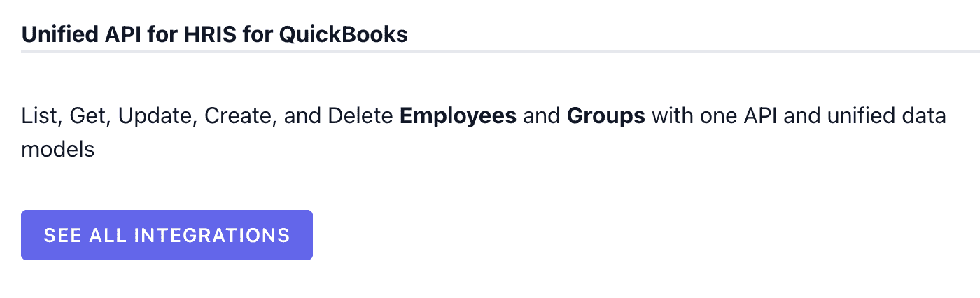 The main advantage of a unified API is that it removes the need to learn the specifics of dozens of unique APIs. Instead, you only need to learn how to interact with a single unified API for any given category and build out the integration logic once.