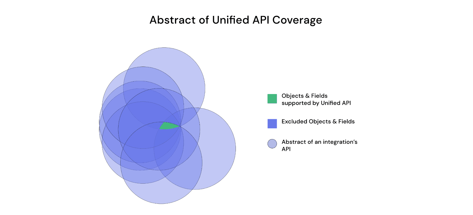 Inherently, unified APIs generally only accommodate the lowest common denominator of objects and endpoints across a group of APIs in order to provide a generalized data model across those services, which creates an inverse relationship between the number of supported integrations and the possible coverage that the unified API can provide. Access to the underlying API is made possible with certain vendors, but it diminishes the value of using a unified API in the first place.