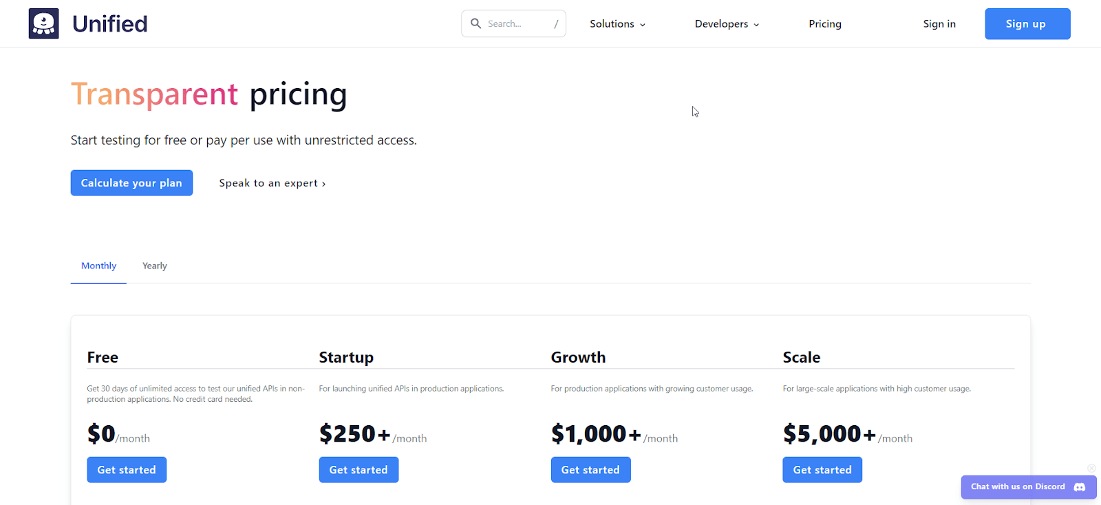Scale: For large-scale applications with high customer usage. $5,000+/month