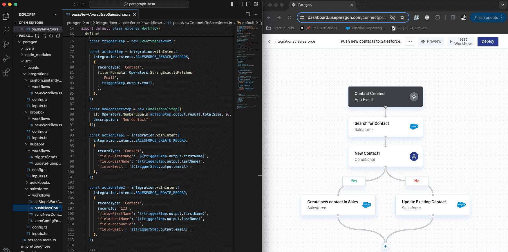 And unlike other Embedded iPaaS solutions, Paragon enables engineering teams to build workflows in a visual workflow editor and in code with a Typescript Framework called Paragraph.