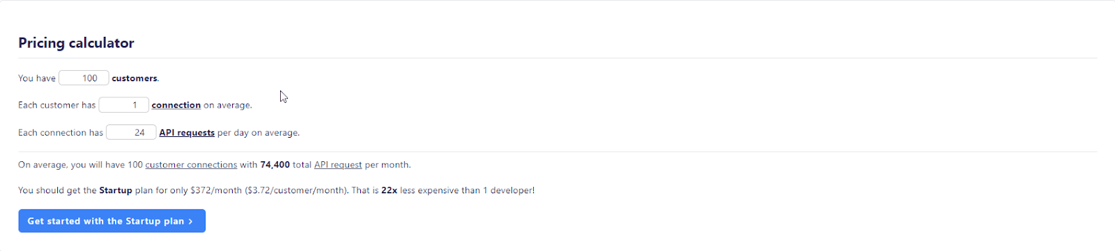 They also offer a pricing calculator on their pricing page. This tool calculates the estimated monthly cost based on the number of users, average connections per user, and average daily API requests.