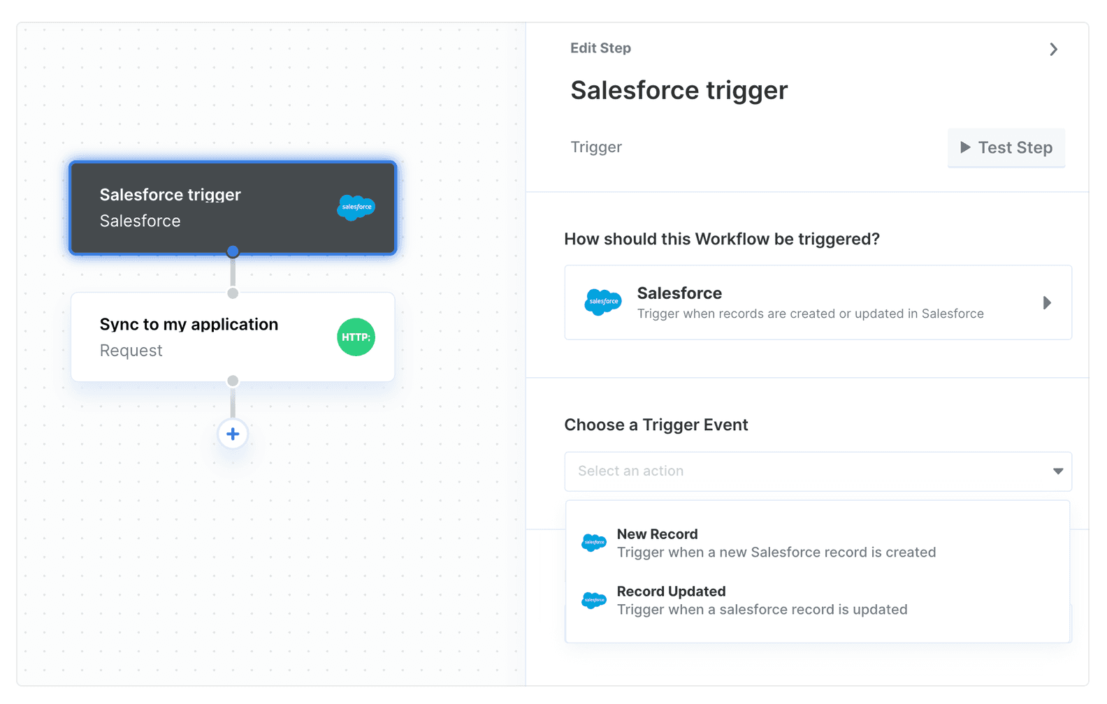 For instance, you might trigger a workflow whenever new contacts are added to a user's Salesforce account, ensuring real-time synchronization of Salesforce contacts with your application.