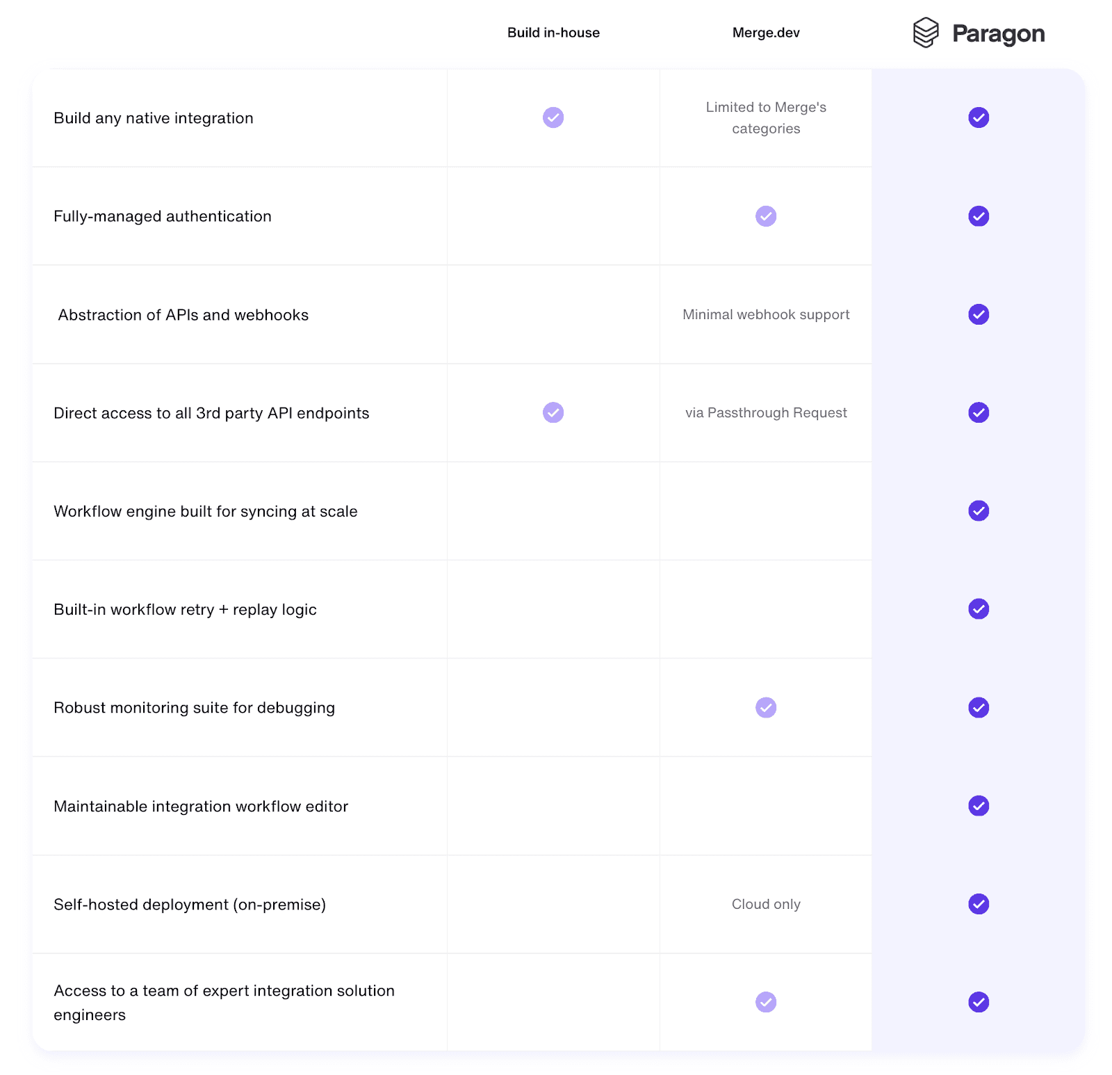 Unlike Merge, Paragon helps you save development resources by cutting implementation time, allowing your team to concentrate on core product development.