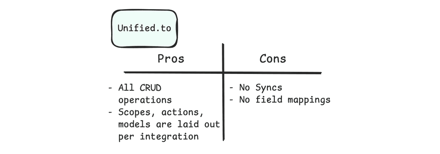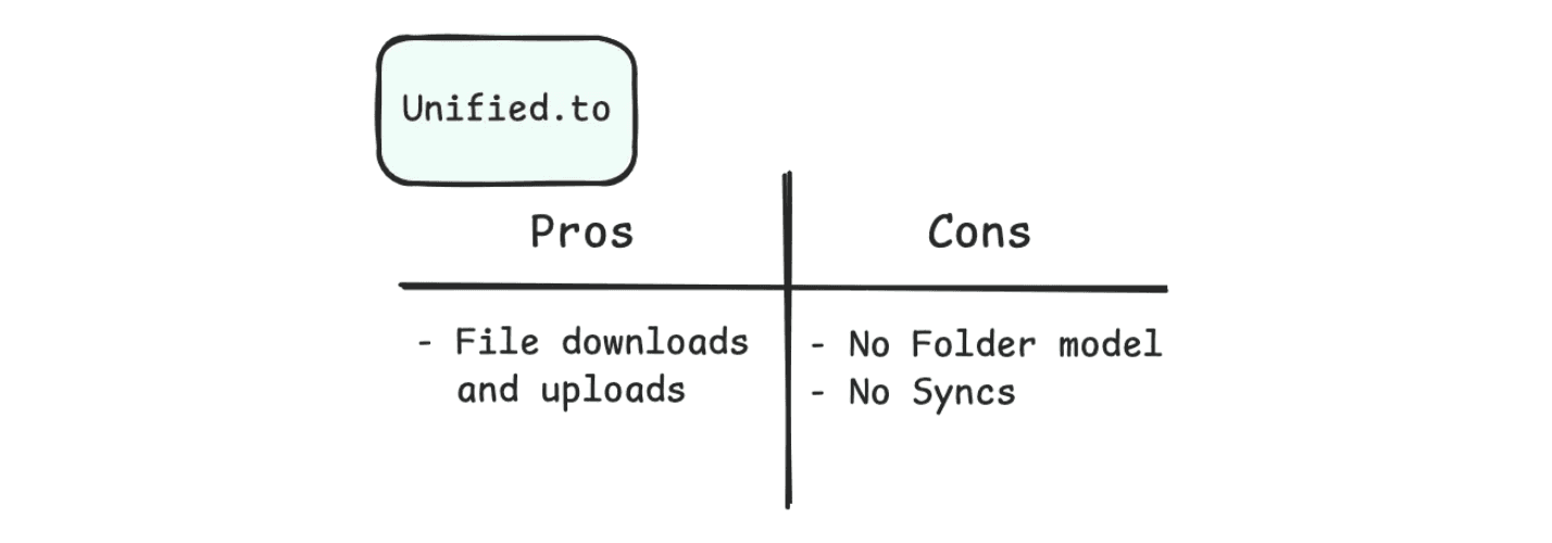 With no support for syncs or filepickers, Unified.to doesn’t strike a good balance of abstraction and custom logic.