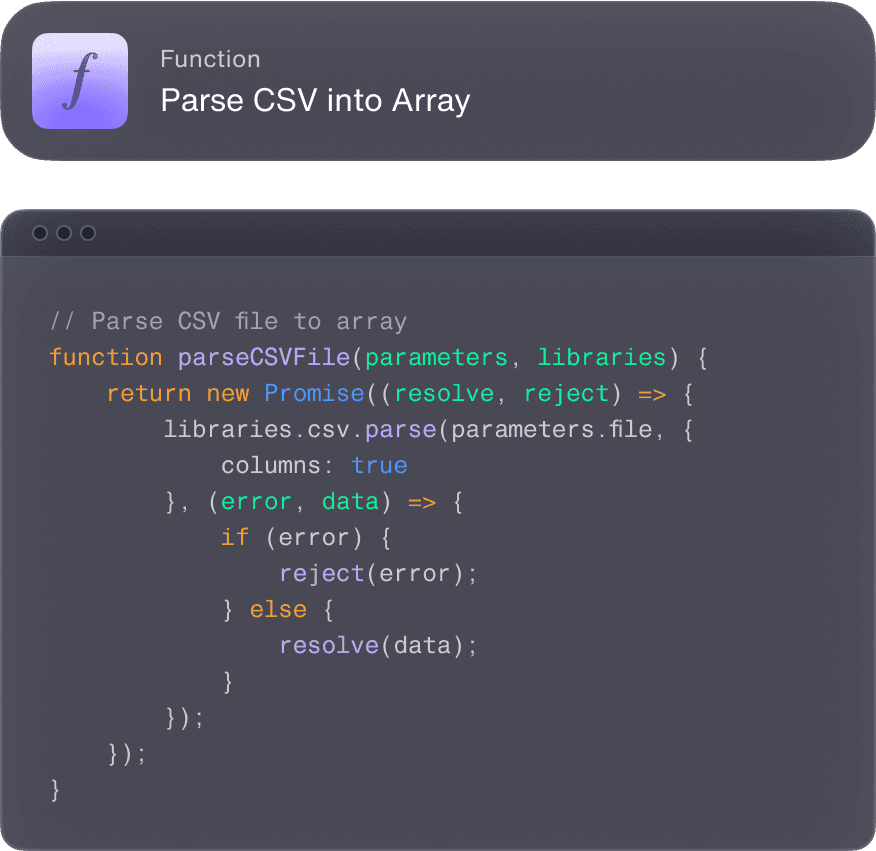 Workflows are highly extensible - you can run JavaScript in workflows for data transformations, to call external libraries, and more.